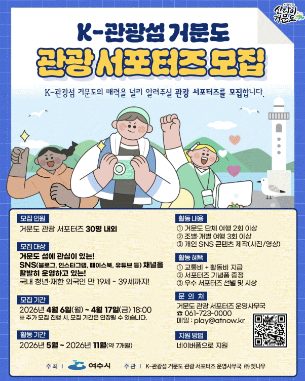 [ÅåÅå´º½º] ¿©¼ö½Ã´Â °Å¹®µµÀÇ ¶§ ¹¯Áö ¾ÊÀº ÀÚ¿¬°ú ½Åºñ·Î¿î ¸Å·ÂÀ» ±¹³»¿Ü¿¡ ¾Ë¸± ¡®K-°ü±¤¼¶ °Å¹®µµ °ü±¤ ¼Æ÷ÅÍÁ¸¦ °ø°³ ¸ðÁýÇÑ´Ù°í ¹àÇû´Ù.