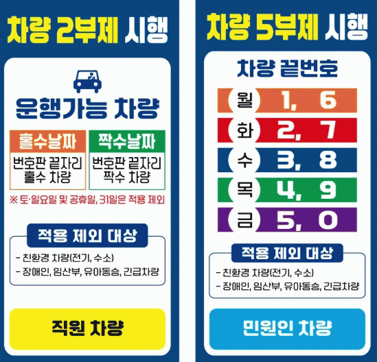½Â¿ëÂ÷ 5ºÎÁ¦´Â µµÃ»À» ¹æ¹®ÇÏ´Â ¹Î¿øÀÎ Â÷·®°ú °ø¿µÁÖÂ÷Àå¿¡ Àû¿ëµÈ´Ù. Â÷·®¹øÈ£ ³¡ÀÚ¸®¿¡ µû¶ó ÇØ´ç ¿äÀÏ¿¡´Â ÃâÀÔÀÌ Á¦ÇѵǸç, ¿äÀϺ° Àû¿ë ±âÁØÀº ¡ã¿ù¿äÀÏ 1¡¤6 ¡ãÈ¿äÀÏ 2¡¤7 ¡ã¼ö¿äÀÏ 3¡¤8 ¡ã¸ñ¿äÀÏ 4¡¤9 ¡ã±Ý¿äÀÏ 5¡¤0ÀÌ´Ù.
