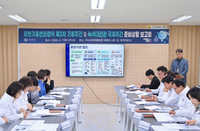 [ÅåÅå´º½º] ¿©¼ö½Ã°¡ 7ÀÏ ¡®Á¦3Â÷ À¯¿£±âÈĺ¯ÈÇù¾à(UNFCCC) ±âÈÄÁÖ°£ ¹× ³ì»ö´ëÀüȯ(GX) ±¹Á¦ÁÖ°£¡¯ÀÇ ¼º°øÀûÀÎ °³ÃÖ¸¦ À§ÇØ ½ÃÀå ±ÇÇÑ´ëÇà ÁÖÀç·Î 3Â÷ Áغñ»óȲ º¸°íȸ¸¦ ¿°í ¸·¹ÙÁö Á¡°Ë¿¡ ³ª¼¹´Ù.
