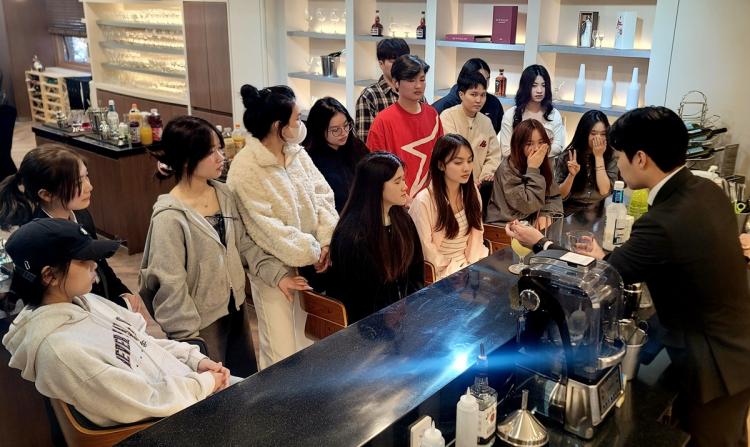 À̳¯ À¯ÇлýµéÀº ÃÖ÷´Ü ÀÎÇÁ¶ó°¡ °®ÃçÁø ±³³» ½Ç½À½Ç¿¡¼ ±³¼öÁøÀÇ ¼¼½ÉÇÑ Áöµµ ¾Æ·¡ ¡ã½ÇÁ¦ Å×ÀÌºí¿¡¼ µô¸µÀ» °æÇèÇØ º¸´Â ¡®Ä«Áö³ë üÇ衯 ¡ãÁ÷Á¢ ½¦ÀÌÄ¿¸¦ Èçµé¸ç ³ª¸¸ÀÇ À½·á¸¦ ¿Ï¼ºÇÏ´Â ¡®Ä¬Å×ÀÏ Á¦Á¶ üÇ衯 ¡ãÄ¿ÇÇÀÇ ±íÀº Çâ¹Ì¸¦ ÃßÃâÇØ ³»´Â ¡®ºê·çÀ×(Brewing) üÇ衯 µî ´Ùä·Î¿î ¼¼¼Ç¿¡ Âü¿©Çß´Ù.