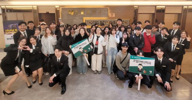 À̹ø Çà»ç´Â Áö³ 4¿ù 1ÀÏ ³»±¹ÀÎ ¹× ¿¹ºñ ½ÅÀÔ»ýµéÀ» ´ë»óÀ¸·Î ÁøÇàµÅ Æø¹ßÀûÀÎ ÀÔÇÐ ¹®ÀÇ¿Í È£ÀÀÀ» ¾ò¾ú´ø Àü°øÃ¼Çè ÇÁ·Î±×·¥ÀÇ ¿±â¿¡ ÀÌ¾î ¸¶·ÃµÆ´Ù. Çѱ¹ÀÇ ¿ì¼öÇÑ È£½ºÇÇÅ»¸®Æ¼(Hospitality) ¹× MICE ½Ç¹« ±³À° ½Ã½ºÅÛÀ» ¾Ë¸®°í, À¯ÇлýµéÀÌ °ü±¤ ¼ºñ½º ÇÙ½É Á÷¹«¸¦ ÇöÀå°¨ ÀÖ°Ô °æÇèÇÒ ¼ö ÀÖµµ·Ï ±âȹµÆ´Ù.