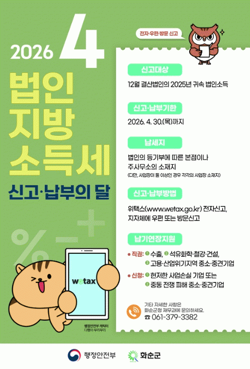 [ÅåÅå´º½º] ȼø±ºÀº 2025³â 12¿ù ¸» °á»ê¹ýÀÎÀ» ´ë»óÀ¸·Î ¿À´Â 4¿ù 30ÀϱîÁö ¹ýÀÎÁö¹æ¼Òµæ¼¼ ÁýÁß ½Å°í¡¤³³ºÎ ±â°£À» ¿î¿µÇÑ´Ù°í ¹àÇû´Ù.