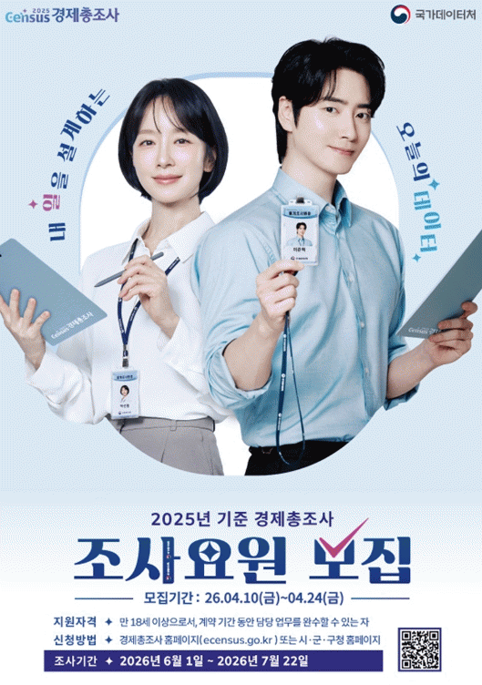 [ÅåÅå´º½º] ¿©¼ö½Ã´Â Àü±¹ÀûÀ¸·Î ½Ç½ÃµÇ´Â ¡®2025³â ±âÁØ °æÁ¦ÃÑÁ¶»ç¡¯¸¦ ¼öÇàÇÒ Á¶»ç¿ä¿øÀ» 4¿ù 10ÀϺÎÅÍ 24ÀϱîÁö ¸ðÁýÇÑ´Ù°í ¹àÇû´Ù.