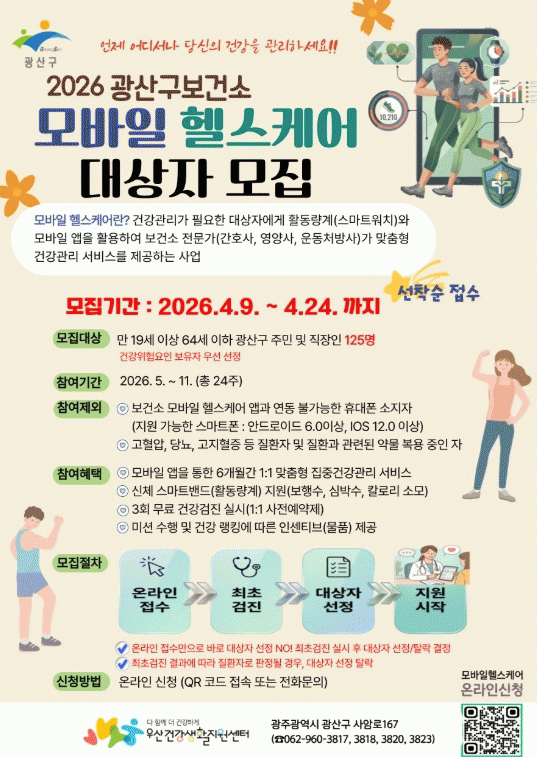 [ÅåÅå´º½º] ±¤ÁÖ ±¤»ê±¸´Â Á¤º¸Åë½Å±â¼ú(ICT)À» Ȱ¿ëÇØ ÁֹεéÀÇ °Ç°À» ì±â´Â ¡®2026³â ¸ð¹ÙÀÏ ÇコÄɾ »ç¾÷À» º»°ÝÀûÀ¸·Î ¿î¿µÇÑ´Ù°í ¹àÇû´Ù.