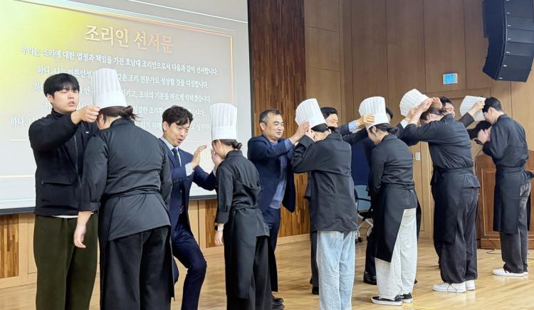 [ÅåÅå´º½º]È£³²´ëÇб³ ¿Ü½ÄÁ¶¸®º£ÀÌÄ¿¸®Çаú(ÇаúÀå ±è¿µ±Õ)´Â 4¿ù 9ÀÏ ¿ÀÀü 10½Ã IT½ºÄù¾î 1Ãþ °´ç¿¡¼ ¿ÃÇØ »õ·Ó°Ô ÀÔÇÐÇÑ ½ÅÀÔ»ýµéÀ» ´ë»óÀ¸·Î Àü¹® Á¶¸®ÀÎÀ¸·Î¼ÀÇ Ã¹°ÉÀ½À» ¾Ë¸®´Â ¡®¿Ü½ÄÁ¶¸®ÀÎ ¼±¼½Ä ¹× Âø¸ð½Ä¡¯ Çà»ç¸¦ ¼ºÈ²¸®¿¡ °³ÃÖÇß´Ù.