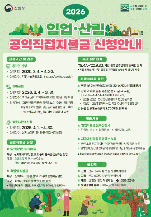 [ÅåÅå´º½º] °íÈﱺÀº ÀÓ¾÷¡¤»ê¸²ÀÇ °øÀͱâ´ÉÀ» ÁõÁøÇϰí ÀÓ¾÷ÀÎÀÇ ¼Òµæ ¾ÈÁ¤À» Áö¿øÇϱâ À§ÇØ ¡®2026³âµµ ÀÓ¾÷¡¤»ê¸² °øÀÍÁ÷Á¢ÁöºÒ±Ý(ÀÓ¾÷Á÷ºÒ±Ý)¡¯ ´ë¸é µî·Ï ½ÅûÀ» ¿À´Â 4¿ù 30ÀϱîÁö Á¢¼öÇÑ´Ù°í ¹àÇû´Ù.