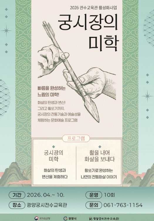 ±èöȣ ±¤¾ç±Ã½ÃÀü¼ö±³À°°üÀåÀº ¡°À̹ø »ç¾÷À» ÅëÇØ ½Ã¹ÎµéÀÌ ¿ì¸® Áö¿ªÀÇ ¼ÒÁßÇÑ ¹«ÇüÀ¯»êÀ» °¡±îÀÌ¿¡¼ º¸°í üÇèÇÒ ¼ö ÀÖµµ·Ï ´Ù¾çÇÑ ÇÁ·Î±×·¥À» ÁغñÇß´Ù¡±¸ç ¡°ÀüÅë ±Ã½Ã ¹®ÈÀÇ °¡Ä¡°¡ ´ÙÀ½ ¼¼´ë·Î À̾îÁú ¼ö ÀÖµµ·Ï ±³À°°ú üÇè ±âȸ¸¦ ²ÙÁØÈ÷ ¸¶·ÃÇϰڴ١±°í ¸»Çß´Ù.