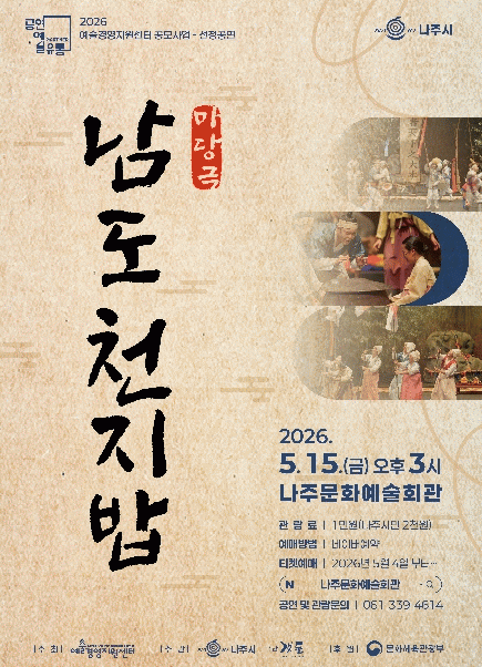 À̹ø °ø¿¬Àº ¡®2026 °ø¿¬¿¹¼ú Áö¿ªÀ¯Åë Áö¿ø»ç¾÷¡¯¿¡ ¼±Á¤µÅ (Àç)¿¹¼ú°æ¿µÁö¿ø¼¾ÅͰ¡ ÁÖÃÖÇÏ°í ³ªÁֽð¡ ÁÖ°üÇÏ¸ç ¹®ÈüÀ°°ü±¤ºÎ ÈÄ¿øÀ¸·Î ÁøÇàµÈ´Ù.