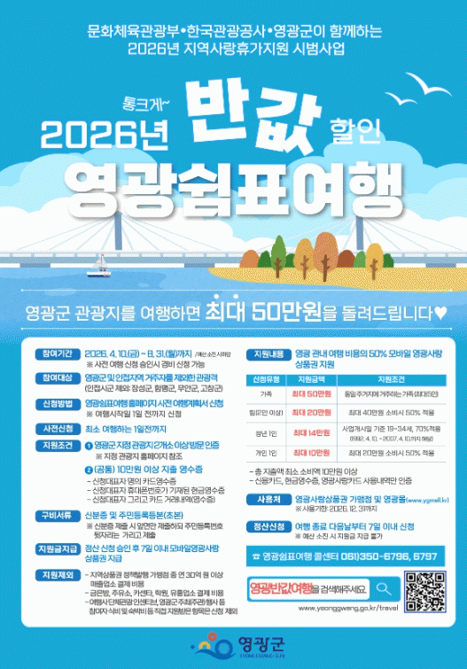 [ÅåÅå´º½º] ¿µ±¤±ºÀº Áö³ 4¿ù 10ÀÏ ¿ÀÀü 9½ÃºÎÅÍ ½ÃÀÛµÈ ¡®2026 Áö¿ª»ç¶û ÈÞ°¡Áö¿ø ½Ã¹ü»ç¾÷ ¡¸¿µ±¤ ½°Ç¥ ¿©Çࡹ¡¯ ½Åû Á¢¼ö°¡ ÇÏ·ç ¸¸¿¡ 1,871¸íÀÌ Á¢¼öÇϸç, 4¿ùºÐÀ¸·Î ¿¹Á¤ÇÑ »ç¾÷ºñ °¡ ¸ðµÎ ¼ÒÁøµÉ °ÍÀ¸·Î ¿¹»óµÅ Á¶±â ¸¶°¨µÆ´Ù°í ¹àÇû´Ù.