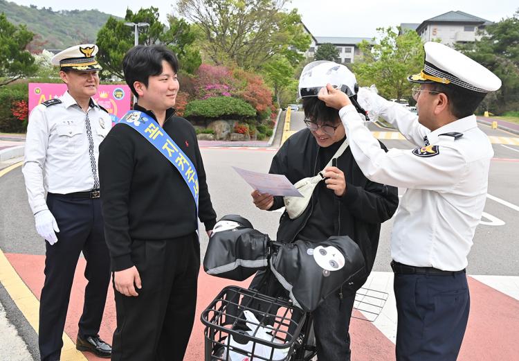 ƯÈ÷ ¾ÈÀü¸ð ¹ÌÂø¿ë ÇлýÀ» ´ë»óÀ¸·Î ¡®¾ÈÀü¸ð Âø¿ë üÇè(¾º¿öÁÖ±â)¡¯ À̺¥Æ®¸¦ ÁøÇàÇØ ÇлýµéÀÇ ÀÚ¹ßÀûÀÎ ¾ÈÀüÀǽÄÀ» ÇÑÃþ ³ôÀÌ´Â µ¥ ±â¿©Çß´Ù.