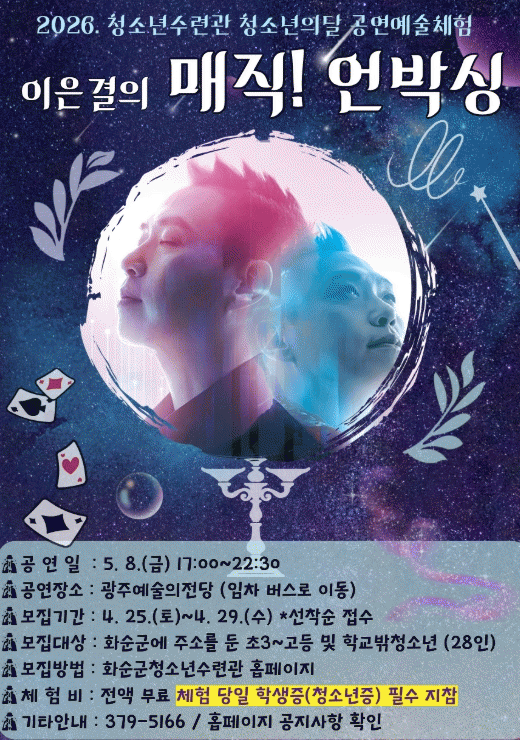 ȼø±º û¼Ò³â¼ö·Ã°ü, û¼Ò³âÀÇ ´Þ °ø¿¬¿¹¼úüÇè ¡®ÀÌÀº°áÀÇ ¸ÅÁ÷! ¾ð¹Ú½Ì¡¯ Âü°¡ÀÚ ¸ðÁý