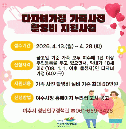 ½Åû ±â°£Àº 4¿ù 28ÀϱîÁö¸ç, ½Åû ¼·ù¿Í À¯ÀÇ»çÇ× µî ÀÚ¼¼ÇÑ ³»¿ëÀº ¿©¼ö½Ã ´©¸®Áý °í½Ã°ø°í¿¡¼ È®ÀÎÇÒ ¼ö ÀÖ´Ù.
