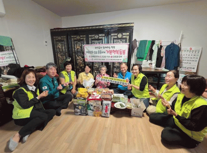 1ȸÂ÷ Ȱµ¿¿¡ Âü¿©ÇÑ ±¤¾ç½Ã¿©¼ºÀÚ¿øºÀ»çȸ´Â ´ë»ó °¡±¸ Áß 1°¡±¸¸¦ ¹æ¹®ÇØ »ý½ÅÀ» ¸ÂÀº ¾î¸£½Å¿¡°Ô ¹Ì¿ª±¹°ú ºÒ°í±â, ³ª¹° µî »ý½Å»óÀ» Á¦°øÇϰí ÄÉÀÌÅ©¿Í ²É´Ù¹ß, ¼±¹°À» ÇÔ²² Àü´ÞÇß´Ù.