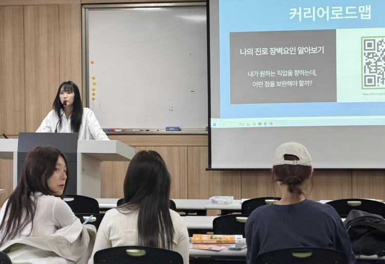 °­ÀÇ¿¡ Âü¿©ÇÑ 2Çгâ ÇлýµéÀº Á÷Á¢ ÀÛ¼ºÇÑ ¡®Ä¿¸®¾î ·Îµå¸Ê¡¯À» ¹ÙÅÁÀ¸·Î, Á¹¾÷ Àü±îÁö °®Ãç¾ß ÇÒ Àü°ø ÀÚ°ÝÁõ, AI ºäƼ ±â¼ú ½Àµæ, À̹ÌÁö ºê·£µù Àü·« µî ±¸Ã¼ÀûÀÎ ¾×¼Ç Ç÷£À» ¼ö¸³Çß´Ù.