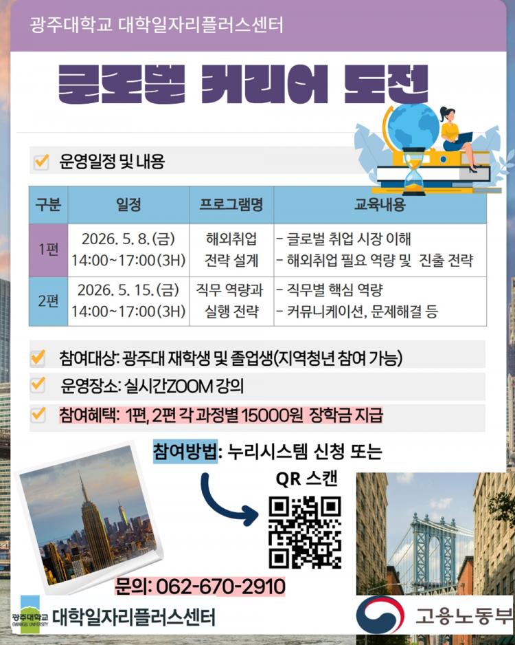[ÅåÅå´º½º]±¤ÁÖ´ëÇб³(ÃÑÀå ±èµ¿Áø) ´ëÇÐÀÏÀÚ¸®Ç÷¯½º¼¾Åʹ û³âµéÀÇ ±Û·Î¹ú Ãë¾÷ °æÀï·Â °È¸¦ À§ÇØ ¡®±Û·Î¹ú Ä¿¸®¾î µµÀü¡¯ Ư°À» ¿î¿µÇÑ´Ù.
