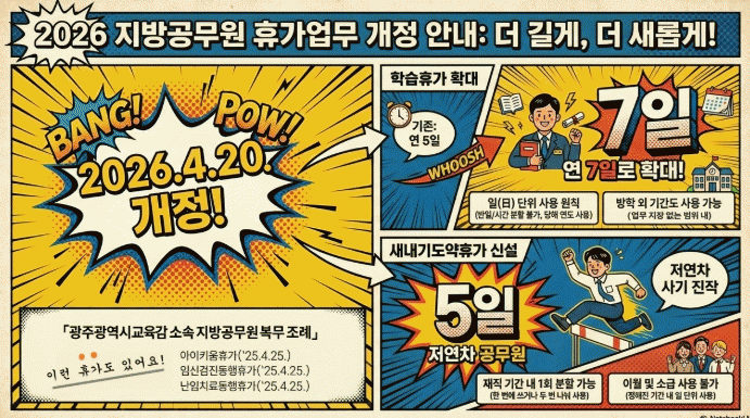 [ÅåÅå´º½º] ±¤Áֽñ³À°Ã»ÀÌ Áö¹æ°ø¹«¿øÀÇ ±Ù¹«¿©°Ç °³¼±À» À§ÇØ Àú°æ·Â °ø¹«¿øÀÇ °øÁ÷ ÀûÀÀÀ» Áö¿øÇÏ´Â ¡®»õ³»±âµµ¾àÈÞ°¡¡¯¸¦ µµÀÔÇϰí Á÷¹«¿ª·® °È¸¦ À§ÇÑ ¡®ÇнÀÈÞ°¡¡¯¸¦ È®´ëÇÑ´Ù.