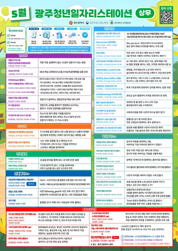 [ÅåÅå´º½º]±¤ÁÖ´ëÇб³ »êÇÐÇù·Â´ÜÀÌ À§Å¹ ¿î¿µÇÏ´Â ±¤ÁÖû³âÀÏÀÚ¸®½ºÅ×ÀÌ¼Ç »ó¹«¼¾ÅÍ(¼¾ÅÍÀå Á¶À¯±Ù, ±¤ÁÖ´ë ȸ°è¼¼¹«Çаú ±³¼ö)´Â 5¿ù Áö¿ª û³âÀ» ´ë»óÀ¸·Î Ãë¾÷¿ª·® °È¿Í Á÷¹«¿ª·®, ÀÚ±âÀÌÇØ, ÀÏ»óȸº¹À» Áö¿øÇÏ´Â ´Ù¾çÇÑ ÇÁ·Î±×·¥À» ¿î¿µÇÑ´Ù.