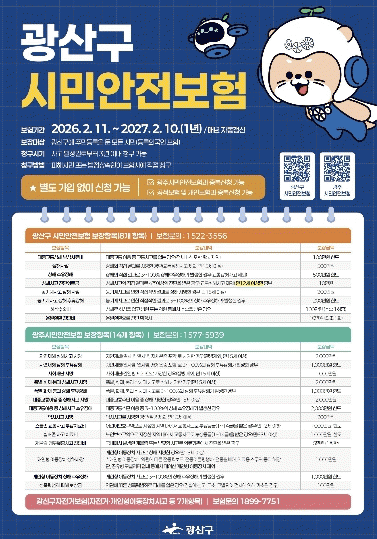±¤»ê±¸ ½Ã¹Î¾ÈÀüº¸ÇèÀº µî·Ï ¿Ü±¹ÀÎÀ» Æ÷ÇÔÇØ ±¤»ê±¸¿¡ Áֹεî·ÏÀ» µÐ ¸ðµç ½Ã¹ÎÀÌ º°µµÀÇ °¡ÀÔ ÀýÂ÷ ¾øÀÌ ÀÚµ¿ °¡ÀԵȴÙ. º¸Çè·á´Â Àü¾× ±¤»ê±¸°¡ ºÎ´ãÇÑ´Ù.