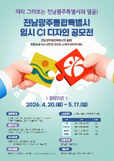 °ø¸ð ÁÖÁ¦´Â ÅëÇÕÆ¯º°½ÃÀÇ »ó¡¼º°ú ½Ã¡¤µµ¹Î, ¿Â ±¹¹ÎÀÇ ±â´ë¿Í ¼Ò¸ÁÀ» ´ãÀº CI ½É¹ú¸¶Å© µðÀÚÀÎÀÌ´Ù. ÀÀ¸ðÀÛ¿¡´Â ¡ãÀü¶óµµ õ³âÀÇ ¿ª»ç¡¤ÀüÅëÀ» °è½ÂÇÑ ÅëÇÕÀÇ ÀÇ¹Ì ¡ã5¡¤18¹ÎÁÖȿ°ú ±¤ÁÖÁ¤½Å¡¤´ëµ¿Á¤½Å ¡ãÀΰøÁö´É(AI)¡¤¿¡³ÊÁö¡¤¹ÝµµÃ¼ µî ÷´Ü»ê¾÷°ú ³ó¾î¾÷ÀÇ Á¶È·Î¿î ¹Ì·¡ ºñÀü ¡ã¾Æ½Ã¾Æ¹®ÈÁ߽ɵµ½Ã·Î¼ÀÇ Á¤Ã¼¼º µîÀÌ »ó¡ÀûÀ¸·Î ¹Ý¿µµÅ¾ß ÇÑ´Ù.