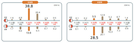 ¼³¹® °á°ú ±Í¼º ¿¹Á¤ ÀοøÀÇ 38.8%´Â 14ÀÏ ¿ÀÀü¿¡ Ãâ¹ßÇÏ°Ú´Ù°í ´äÇÑ ¹Ý¸é ±Í°æ ÀοøÀº 28.5%°¡ 15ÀÏ ¿ÀÈÄ, 20.1%°¡ 16ÀÏ ¿ÀÈÄ¿¡ Ãâ¹ßÇϰڴٰí ÀÀ´äÇß´Ù.