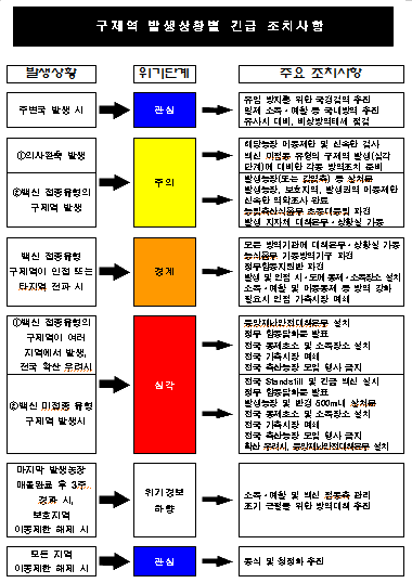 ³ó¸²Ãà»ê½ÄǰºÎ´Â 9ÀÏ ±¸Á¦¿ª °¡Ãà¹æ¿ª½ÉÀÇȸ¸¦ ¿¾î 4´Ü°è·Î µÅ ÀÖ´Â À§±â°æº¸¸¦ ÃÖ°í´Ü°èÀÎ '½É°¢'À¸·Î °Ý»ó, °ÅÁ¡¼Òµ¶½Ã¼³ ¼³Ä¡¸¦ È®´ëÇϰí Àü±¹ 86°³ °¡Ãà½ÃÀåÀ» ´çºÐ°£ Àü¸é ÈÞÀå½ÃŲ´Ù°í ¹àÇû´Ù. ƯÈ÷ »ì¾ÆÀÖ´Â °¡ÃàÀÇ ³óÀå °£ À̵¿µµ ±ÝÁöµÈ´Ù.