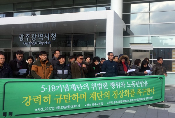 Áö³ 1¿ù 23ÀÏ ±¤Áֽùλçȸ´Üü¿Í ¿©¼º´Üü µîÀº ±âÀÚȸ°ßÀ» ¿°í "5·18±â³äÀç´ÜÀº ºÎÆÐÇß´Ù. ¿À·ÔÀÌ »ì¾Æ ÀÖ¾î¾ß ÇÒ ¿À¿ùÁ¤½ÅÀÌ 5·18±â³äÀç´Ü ¾È¿¡¼ºÎÅÍ ½â¾î°¡°í ÀÖ´Ù"¸ç "»ç¶ûµµ ¸í¿¹µµ À̸§µµ ¾Æ³¦¾øÀÌ ¸ðµç °É ´øÁö¸ç ÁöÄѿ ÀúÇ×°ú ´ëµ¿ÀÇ Á¤½ÅÀ» ÀÌÁ¦ ´õ ÀÌ»ó 5·18±â³äÀç´Ü¿¡¼ ã¾Æº¼ ¼ö ¾ø´Ù"°í °ÇÏ°Ô ºñÆÇÇÑ ¹Ù ÀÖ´Ù.