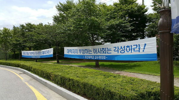 Áö³ÇØ 6¿ù Á¶¼±´ë ±³¼öÆòÀÇȸ´Â ÀÌ»çȸ°¡ ´ëÇÐÀÚÄ¡¸¦ ºÎÁ¤Çϰí ÀÖ´Ù¸ç ÀÌ¿¡ ¹Ý¹ßÇÏ´Â Çö¼ö¸·À» ±³³» °÷°÷¿¡ ºÙÀÎ ¹Ù ÀÖ´Ù.