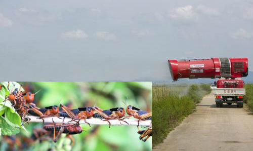 ÇØ³²±º »êÀÌ¸é °£Ã´Áö¿¡ ÃâÇö, ³óÀÛ¹°¿¡ ÇÇÇØ¸¦ ÀÔÈ÷°í ÀÖµç ¼ö¾ï¸¶¸®ÀÇ ¸Þ¶Ñ±â¶¼¿¡ ´ëÇÑ ¹æÁ¦ÀÛ¾÷ Àå¸é<ÇØ³²±º>