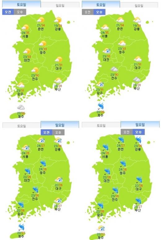À帶Àü¼±ÀÇ ¿µÇâÀ¸·Î 11ÀÏ(Åä) ´ÊÀº ¿ÀÈÄ¿¡ Á¦ÁÖµµ¿¡ ºñ°¡ ½ÃÀ۵Š12ÀÏ(ÀÏ)°ú 13ÀÏ(¿ù)Àº Àü±¹¿¡ ºñ°¡ ¿Ã °ÍÀ¸·Î ¿¹º¸Çß´Ù. <±¤ÁÖ´º½ºÅë=¹Úº´¸ð ±âÀÚ>