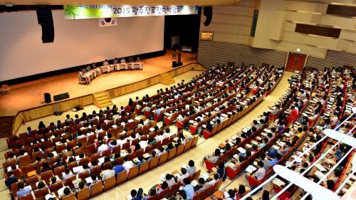 25ÀÏ ¿ÀÈÄ 2½Ã ±¤Áֽà ºÏ±¸ ¿ÀÄ¡µ¿ ±¤ÁÖ±³À°¿¬¼ö¿ø¿¡¼ ±¤Áֽñ³À°Ã» ÁÖÃÖ·Î ¿¸° ‘2015 ±¤ÁÖ Áø·ÎÁøÇйڶ÷ȸ’¿¡ Âü°¡ÇÑ ¼¿ï ÁÖ¿ä´ëÇÐ ÀÔÇлçÁ¤°üµéÀÌ ‘´ëÇÐÀԽà ÇлýºÎ Á¾ÇÕÀüÇü’¿¡ ´ëÇÑ ÅäÅ©¼î¿¡¼ ÀÌ·¸°Ô °Á¶Çß´Ù.