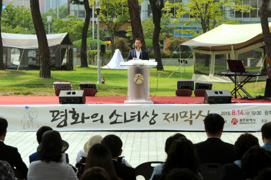 ÇÑÆí Áö³ 8¿ù ±¤ÁÖ½Ãû ¾Õ ½Ã¹ÎÀÇ ½£ ±¤Àå¿¡´Â ±¤ÁÖ ÆòÈÀÇ ¼Ò³à»óÀÌ ¼¼¿öÁ³´Ù. ÀÌ ¼Ò³à»óÀº Âø»ç¸ð°¡ Å©¶ó¿ìµå ÆÝµù°ú ÈÄ¿øÀ» ÅëÇØ ¸ð±ÝÇÑ ºñ¿ëÀ¸·Î °Ç¸³µÆ´Ù <±¤ÁÖ´º½ºÅë=¹Úº´¸ð ±âÀÚ>