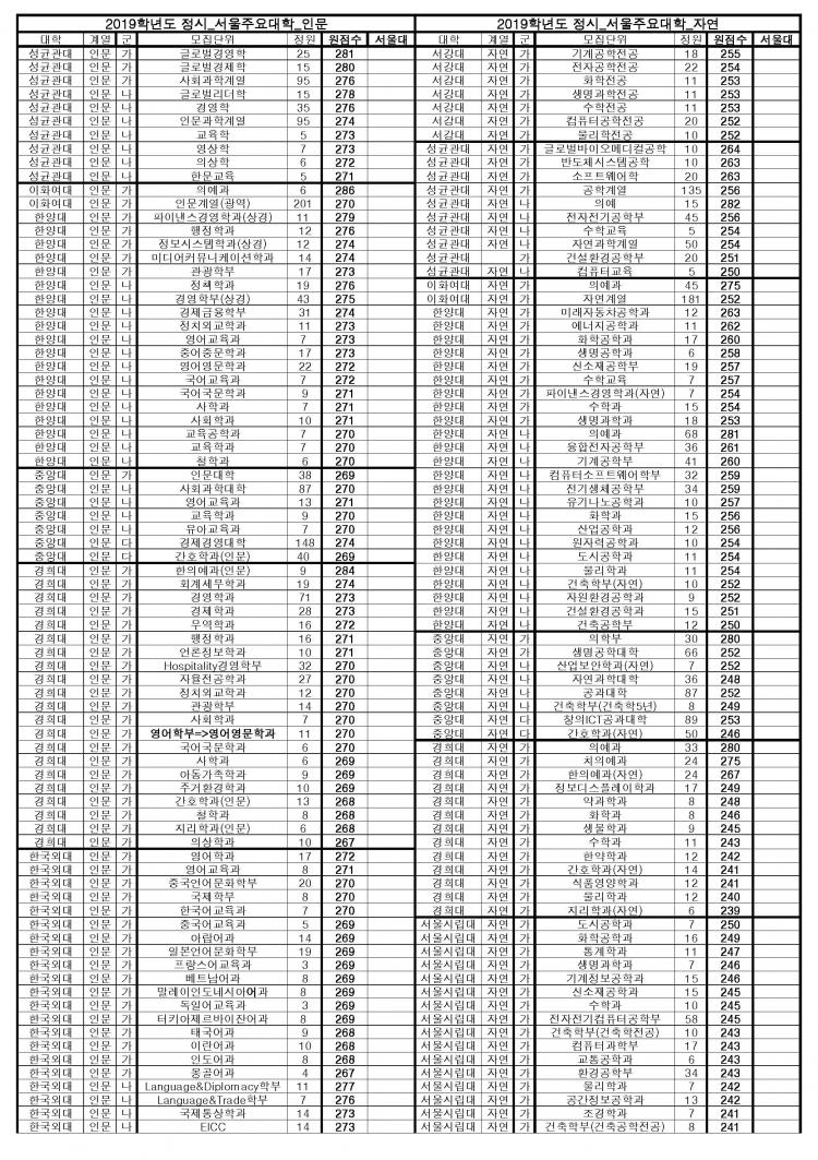 ÀÚ¿¬°è¿ÀÇ °æ¿ì ÀÇ¿¹°ú 274Á¡, Ä¡ÀÇÇаú 267Á¡, ¼öÀÇ¿¹°ú 261Á¡, ¼öÇб³À°°ú 236Á¡, °£È£Çаú 229Á¡, Àü±â°øÇаú 228Á¡, ¼öÇаú 218Á¡´ë, ÀÚ¿¬°è¿ Áö¿ø °¡´ÉÁ¡¼ö´Â ¼öÇÐ(°¡Çü) ÁöÁ¤ 203Á¡, ¼öÇÐ(°¡/³ªÇü) Çаú´Â 200Á¡´ë¿¡¼ Áö¿øÀÌ °¡´ÉÇÒ °ÍÀ¸·Î ¿¹»óµÈ´Ù.