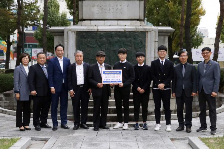 1920³â´ë ÃÖ´ë ±Ô¸ðÀÇ Ç×ÀϿÀ» ÁÖµµÇÑ ¼±¹èµéÀÇ Á¤½ÅÀ» ±â¸®±â À§ÇØ, Ç×ÀϿ Âü¿©ÀÚÀÇ ÈļÕÀ» ã¾Æ³» ¡®µ¶¸³¿îµ¿ À¯°øÀÚ ¹®ÆÐ¡¯¸¦ ´Þ¾ÆÁÖ´Â ÀÏ¿¡ Çлýȸ¿¡¼ ÀÚ¹ßÀûÀ¸·Î ¸ð±Ý¿îµ¿À» Àü°³ÇÏ¿© ÀÌÆ² µ¿¾È ¸ðÀº 50¸¸ 3250¿ø°ú ±¤ÁÖÁ¦ÀÏ°í »çȸÀû Çùµ¿Á¶ÇÕ¿¡¼ ÈÄ¿øÇÑ 200¸¸¿øÀ» ÇÕÇÏ¿©, 29ÀÏ Å©¶ó¿ìµåÆÝµùÀ» ÁÖµµÇÑ ±¤º¹È¸¿¡ Àü´ÞÇÏ¿´´Ù.
