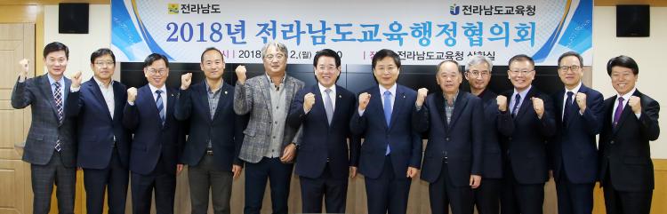 ±è¿µ·Ï Àü¶ó³²µµÁö»ç¿Í Àå¼®¿õ Àü¶ó³²µµ±³À°°¨Àº 12ÀÏ(¿ù) ¿ÀÈÄ Àü¶ó³²µµ±³À°Ã» 5Ãþ »óȲ½Ç¿¡¼ ¡®2018³â Àü¶ó³²µµ±³À°ÇàÁ¤ÇùÀÇȸ¡¯¸¦ °®°í °í±³ ½ÅÀÔ»ý ±³°ú¼ºñ °øµ¿ ºÎ´ã µî 5°ÇÀÇ ¾È°Ç¿¡ ´ëÇØ ÇùÀÇÇß´Ù.