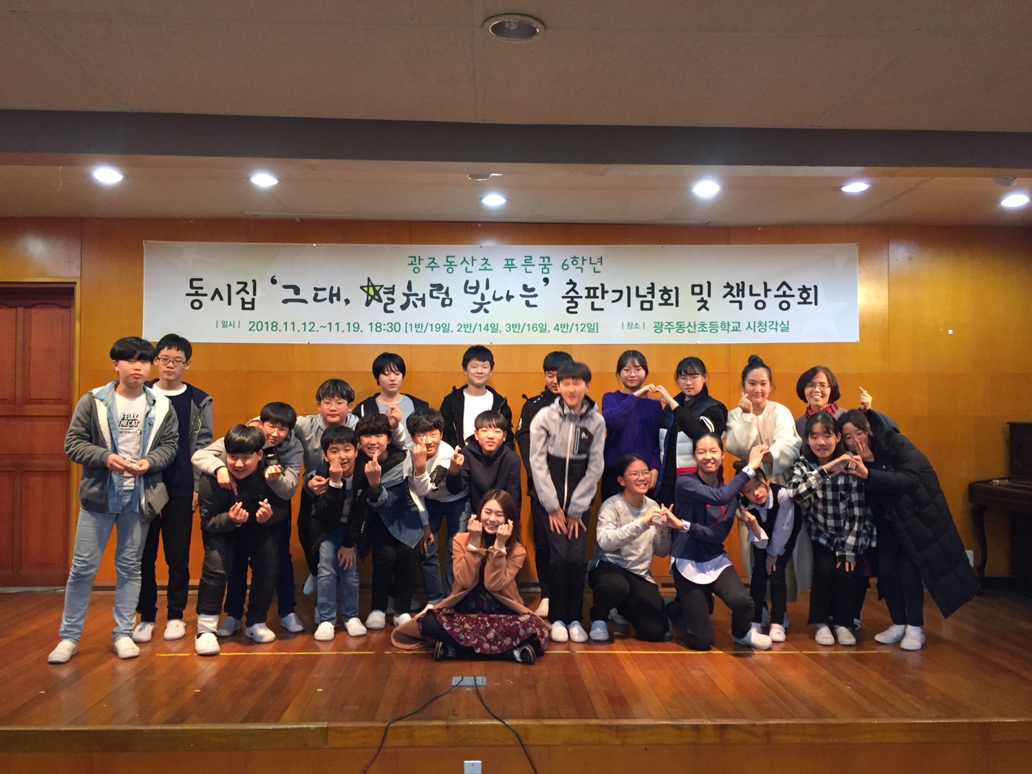 À̹ø Çà»ç´Â ±³À°ºÎ, ±¤ÁÖ±¤¿ª½Ã±³À°Ã» Çлý Ã¥¾²±â µ¿¾Æ¸® Áö¿ø »ç¾÷ÀÇ ÀÏȯÀ¸·Î ±¤ÁÖµ¿»êÃʵîÇб³ Çлý Ã¥¾²±â µ¿¾Æ¸® ¡®µ¿»êäñ ²É¡¯ ÇлýµéÀÌ 1³â µ¿¾È ³ë·ÂÇØ ¸¸µç µ¿½ÃÁý ¡®±×´ë, º°Ã³·³ ºû³ª´Â¡¯ÀÇ Ãâ°£À» ÃàÇÏÇÏ´Â ÀÚ¸®¿´´Ù. µ¿½ÃÁý ¡®±×´ë, º°Ã³·³ ºû³ª´Â¡¯Àº ±¤ÁÖµ¿»êÃÊ Çлý Ã¥¾²±â µ¿¾Æ¸® ¡®µ¿»êäñ ²É¡¯ ȸ¿ø 6Çгâ 86¸í Àü¿øÀÌ Âü¿©ÇßÀ¸¸ç, 6Çг⠴ãÀÓ±³»ç¿Í Çкθð °Ý·Á±ÛÀ» ´ã¾Æ ±× Àǹ̸¦ ´õÇß´Ù.