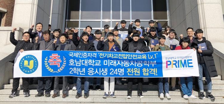 ¼¼°èÀûÀÎ ½ÃÇèÀÎÁõ ±â°üÀÎ TUV ¶óÀζõµå ÁÖ°üÀ¸·Î Áö³ 10¿ù 24ÀÏ ½ÃÇàÇÑ ¡®Àü±âÂ÷°íÀü¾Ð¾ÈÀü±³À°Lv.1¡¯ ½ÃÇè¿¡¼ È£³²´ëÇб³ ¹Ì·¡ÀÚµ¿Â÷°øÇкÎ(ÇкÎÀå Ȳº¸½Â) Çлý 24¸íÀÌ ÀÀ½ÃÇØ Àü¿ø ÇÕ°ÝÇß´Ù.