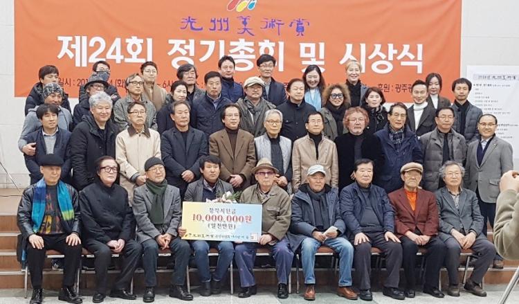 (»ç)±¤Áֹ̼ú»ó¿î¿µÀ§¿øÈ¸(ÀÌ»çÀå ¹èµ¿È¯)´Â 12¿ù 4ÀÏ ±¤ÁÖ YMCA¿¡¼ ¡®Á¦24ȸ ¹Ì¼ú»ó¿î¿µÀ§¿øÈ¸¡¯¸¦ ¿°í ¿ÃÇØ ¼ö»óÀÚ·Î ±Ç½ÂÂù ÀÛ°¡¸¦ ¼±Á¤Çß´Ù. ¼ö»ó ÀÛ°¡¿¡°Ô´Â âÀÛÁö¿ø±Ý 1,000¸¸¿øÀÌ ÁÖ¾îÁø´Ù.