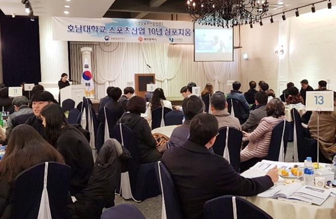 [ÅåÅå´º½º] È£³²´ëÇб³°¡ 12¿ù 11ÀÏ ±¤ÁÖ ¾Æ¸§´Ù¿îÄÁº¥¼Ç¼¾ÅÍ¿¡¼ ¡®Áö¿ª½ºÆ÷Ã÷»ê¾÷ µ¿·Â, È£³²´ëÇб³ ½ºÆ÷Ã÷»ê¾÷ 10³â ¼º°ú¿Í °úÁ¦¡¯ ÁÖÁ¦·Î ¡®½ºÆ÷Ã÷»ê¾÷ 10³â ½ÉÆ÷Áö¾ö¡¯À» °³ÃÖÇß´Ù.