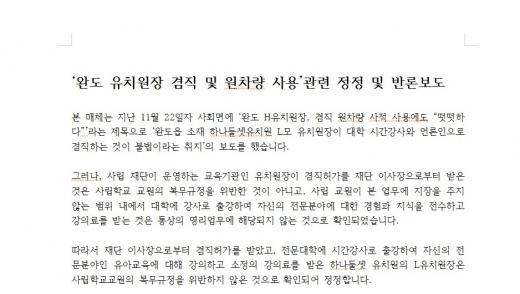 [ÅåÅå´º½º] º» ¸Åü´Â Áö³ 11¿ù 22ÀÏÀÚ »çȸ¸é¿¡ ¡®¿Ïµµ HÀ¯Ä¡¿øÀå, °âÁ÷ ¿øÂ÷·® »çÀû »ç¿ë¿¡µµ ¡°¶¸¶¸ÇÏ´Ù¡±¡¯¶ó´Â Á¦¸ñÀ¸·Î ¡®¿ÏµµÀ¾ ¼ÒÀç ÇϳªµÑ¼ÂÀ¯Ä¡¿ø L¸ð À¯Ä¡¿øÀåÀÌ ´ëÇÐ ½Ã°£°»ç¿Í ¾ð·ÐÀÎÀ¸·Î °âÁ÷ÇÏ´Â °ÍÀÌ ºÒ¹ýÀ̶ó´Â ÃëÁö¡¯ÀÇ º¸µµ¸¦ Çß½À´Ï´Ù.