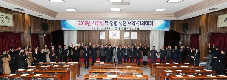 [ÅåÅå´º½º] ±¤Áֽñ³À°Ã»ÀÌ 3ÀÏ ½Ã±³À°Ã» 2Ãþ ´ë°´ç¿¡¼ ÀåÈÖ±¹ ±³À°°¨À» ºñ·ÔÇÑ Àü ±³Á÷¿øÀÌ Âü¼®ÇÑ °¡¿îµ¥ ½Ã¹«½ÄÀ» °âÇÑ Ã»·Å½Çõ ´ÙÁüÀ¸·Î ±âÇØ³â »õÇØ ù ¾÷¹«¸¦ ½ÃÀÛÇß´Ù.