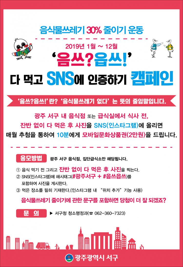 ÁֹΠ´©±¸³ª ¼±¸ °ü³» À½½ÄÁ¡À̳ª Áý´Ü±Þ½Ä¼Ò(Çб³, º´¿ø, °ø°ø±â°ü µî ±¸³»½Ä´ç)¿¡¼ À½½ÄÀ» ¸Ô±â Àü, ÀÜ¹Ý ¾øÀÌ ´Ù ¸ÔÀº ÈÄ »çÁøÀ» °¢°¢ ÃÔ¿µÇÏ¿© ¸ÔÀº Àå¼Ò¿Í ÇØ½¬Å±×(#À½¾²À¾¾² + #±¤ÁÖ¼±¸)¸¦ ÇÔ²² SNS(ÀνºÅ¸±×·¥)¿¡ °Ô½ÃÇÏ¸é µÈ´Ù.