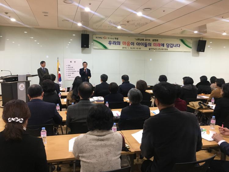 [ÅåÅå´º½º] Àü¶ó³²µµ³ªÁÖ±³À°Áö¿øÃ»(±³À°Àå ¼Ãá±â)Àº 1¿ù 16ÀÏ(¼ö) ±¹¸³³ªÁÖ¹Ú¹°°ü(°üÀå ÀºÈ¼ö)¿¡¼ °ü³» À¯․ÃÊ․ÁßÇб³ ±³¿øµéÀ» ´ë»óÀ¸·Î ¡®´õ ´õÇÏ´Â Çб³, ´õ ³ª´©´Â Çлý¡¯ ±¸ÇöÀ» À§ÇÑ ¡¸³ªÁÖ±³À°2019¡¹ ¼³¸íȸ¸¦ °¡Á³´Ù.