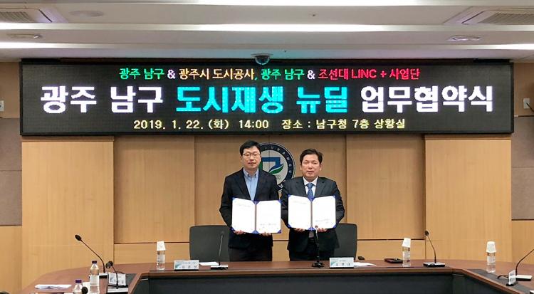 [ÅåÅå´º½º] Á¶¼±´ëÇб³(ÃÑÀåÁ÷¹«´ë¸® ±èÀçÇü) LINC+»ç¾÷´Ü(´ÜÀå ±èÃἺ)Àº ±¤ÁÖ±¤¿ª½Ã ³²±¸Ã»(±¸Ã»Àå ±èº´³»)°ú 1¿ù 22ÀÏ ¿ÀÈÄ 2½Ã ³²±¸Ã»¿¡¼ µµ½ÃÀç»ý ´ºµô»ç¾÷ ÃßÁø ¹× Áö¿ª»çȸ ¹ßÀü¿¡ °üÇÑ Çù¾àÀ» ü°áÇß´Ù°í ¹àÇû´Ù.