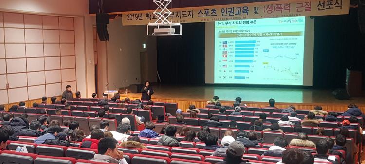 Ãֱ٠üÀ°°è (¼º)Æø·Â ¹®Á¦°¡ »çȸÀû À̽´·Î ºÎ°¢µÇ°í ÀÖ´Â °¡¿îµ¥ ¸ðÀÎ Çб³ ¿îµ¿ºÎ °¨µ¶, ÄÚÄ¡, ±³Á÷¿øµéÀº ¡®(¼º)Æø·Â ¹× °©Áú ¹®È ±ÙÀý °áÀǹ®¡¯À» ³¶µ¶ÇÑ ÈÄ ¡°ºñÀαÇÀû °©Áú ÇàÀ§¸¦ ±ÙÀýÇϰڴ١±¸ç ¡°Çлý¼±¼ö, Çкθð¿Í »óÈ£ ½Å·Ú¸¦ ¹ÙÅÁÀ¸·Î ŸÀÇ ¸ð¹üÀÌ µÇ°Ú´Ù¡±°í ¼±¾ðÇß´Ù.