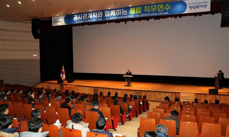 Àå ±³À°°¨Àº ±¤ÁÖ±¤¿ª½Ã±³À°Ã»ÀÌ 29ÀÏ(È) ¿ÀÈÄ2½Ã Çб³½Ã¼³ °ø»ç °ü°èÀÚ ¹× ±â¼úÁ÷°ø¹«¿ø 200¿© ¸íÀÌ Âü¼®ÇÑ °¡¿îµ¥ ±¤ÁÖ±³À°¿¬¼ö¿ø ´ë°´ç¿¡¼ °³ÃÖÇÑ ¡®2019³â °ø»ç°ü°èÀÚ¿Í ÇÔ²²Çϴ û·Å Á÷¹«¿¬¼ö¡¯¿¡¼ À̰°ÀÌ ¸»ÇÑ ÈÄ ¡°ºÎÆÐ´Â ¹ÙÀÌ·¯½º¿Í °°ÀÌ ¿· »ç¶÷¿¡°Ô °Åħ¾øÀÌ Àü¿°µÇ´Â »çȸÀû Áúº´ÀÌ´Ù¡±¸ç °æ°è¿Í ÁÖÀǸ¦ ´çºÎÇß´Ù.