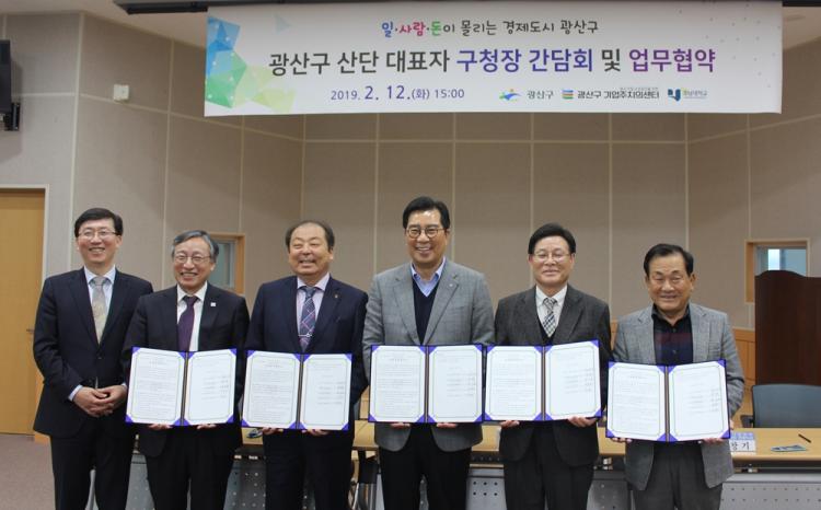 À̳¯ Çù¾à½Ä¿¡´Â ¾ç½ÂÇРȣ³²´ëÇб³ LINC+»ç¾÷´ÜÀå, ±è¿µÁý ±¤»ê±¸ ±â¾÷ÁÖÄ¡ÀǼ¾ÅÍÀå, ±èº¸°ï Æòµ¿Áö¿ª±â¾÷¿î¿µÇùÀÇȸÀå, ¿°È«¼· Çϳ²»ê¾÷´ÜÁö°ü¸®°ø´Ü ÀÌ»çÀå, ÀÌÁ¤¿¬ ¼ÒÃÌ³ó°ø´ÜÁö ¿î¿µÇùÀÇȸÀå, ±èÇüÁØ ±¤»ê±¸ °æÁ¦È¯°æ±¹Àå µî ¾à 20¿©¸íÀÌ Âü¼®ÇÏ¿© »ê¾÷´ÜÁö ³» ±â¾÷ Ȱ¼ºÈÀÇ Çʿ伺À» ÀνÄÇϰí, »óÈ£Çù·Â°ü°è ±¸Ãà¿¡ ´ëÇØ ³íÀÇÇÏ´Â ½Ã°£À» °¡Á³´Ù.