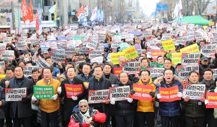 ±Ý³²·Î¸¦ °¡µæÃ¤¿î ½Ã¹ÎµéÀº "±èÁøÅÂ, ÀÌÁ¾¸í, ±è¼ø·Ê ÅðÃâÇ϶ó! ÀÚÀ¯Çѱ¹´ç »çÁËÇ϶ó! 5¡¤18¿ª»ç¿Ö°îó¹ú¹ý Á¦Á¤Ç϶ó!" µîÀ» ¿ÜÄ¡¸ç Áýȸ¸¦ À̾´Ù.