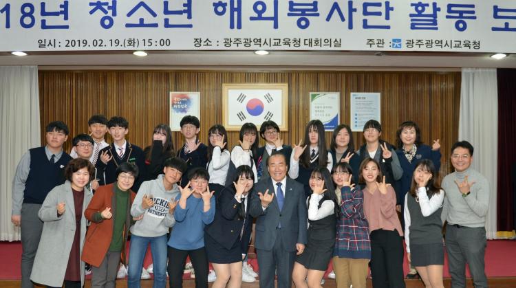 [ÅåÅå´º½º] ±¤ÁÖ±¤¿ª½Ã±³À°Ã»(±³À°°¨ ÀåÈÖ±¹)ÀÌ 19ÀÏ ½Ã±³À°Ã» ´ëȸÀǽǿ¡¼ ¡®2018 û¼Ò³â ÇØ¿ÜºÀ»ç´Ü Ȱµ¿ º¸°íȸ¡¯¸¦ °®°í Áö³ÇØ Áغñ¿¡ µé¾î°¡ ¿ÃÇØ 1¿ù27ÀÏ Á¾·áµÈ û¼Ò³â ÇØ¿ÜºÀ»çȰµ¿ ÀÏÁ¤À» ¸¶¹«¸®Çß´Ù.