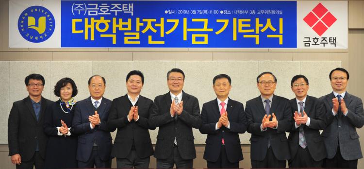 ¹Ú»óö È£³²´ëÇб³ ÃÑÀå(»çÁø ¿ÞÂÊ)ÀÌ ´ëÇйßÀü±â±Ý 1õ¸¸¿øÀ» ÄèôÇÑ ±è¸í±º ±ÝÈ£ÁÖÅà ´ëÇ¥À̻翡°Ô °¨»çÆÐ¸¦ Àü´ÞÇϰí ÀÖ´Ù.