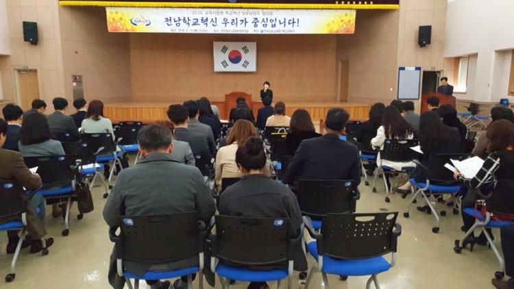 [ÅåÅå´º½º]Àü¶ó³²µµ±³À°Ã»(±³À°°¨ Àå¼®¿õ)ÀÌ 3¿ù 12ÀÏ(È) µµ±³À°Ã» 2Ãþ ´ëȸÀǽǿ¡¼ 2019³â Á¶Á÷°³ÆíÀ¸·Î ½Å¼³µÈ ±³À°Áö¿øÃ»ÀÇ Çб³Çõ½ÅÆÀ ¾÷¹«´ã´çÀÚ ÇùÀÇȸ¸¦ °®°í Çб³Çõ½Å Àü¸éȸ¦ À§ÇÑ Ã¼°èÀûÀ̰í È¿À²Àû Áö¿øÀ» ´ÙÁüÇß´Ù.